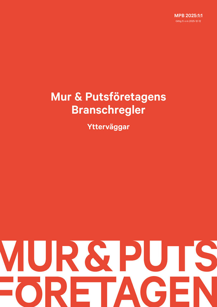 Branschreglerna administreras av Mur & Putsföretagens Tekniska Kommitté. MPB omfattar de fasadlösningar och konstruktioner som närmare beskrivs i detta dokument.